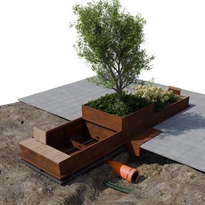 Public Outdoor Creations is verheugd om u kennis te laten maken met de “Climate Tree Box Modules”: een innovatieve zelfregulerende boombak die gedeeltelijk in het maaiveld wordt geplaatst en tevens dient als waterberging. De Climate Tree Box Modules zijn ontworpen om boven kabels en leidingen geplaatst te kunnen worden en kunnen worden aangesloten op de hemelwaterafvoer ... |